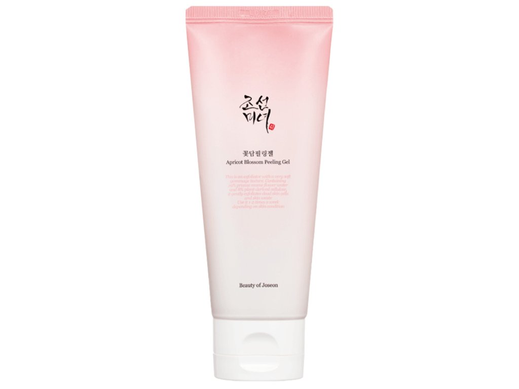 Marhuľový gélový peeling. Beauty of Joseon - Apricot Blossom Peeling Gel - pleťový peeling typu gommage, ktorý vďaka obsahu celulózy mechanický odstraňuje odumreté kožné bunky a nečistoty. Má gélovú konzistenciu a počas zmývania vytvára drobné perličky. Prípravok bol obohatený o extrakt z marhule japonskej, ktorý hydratuje, extrakt z jablka, ktorý vyhladzuje a chráni pred voľnými radikálmi a extrakt z listov zo zeleného čaju, ktorý upokojuje podráždenie a zápalové prejavy. Prírodný, vegánsky produkt.
