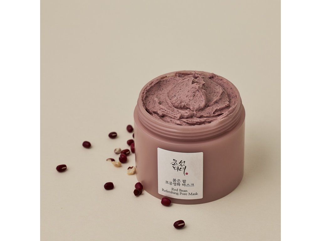 Krémová maska s ílom. Beauty of Joseon - Red Bean Refreshing Pore Mask - krémová ílová maska na tvár, ktorá osviežuje, hydratuje, príjemne chladí a nespôsobuje nepríjemné pnutie. Obsahuje íl a extrakt z červených fazulí adzuki, ktoré absorbujú prebytočný kožný maz, jemne exfoliujú a čistia upchaté póry. Prípravok bol obohatený o extrakt z brečtanu a extrakt z jablka, ktoré hydratujú a chránia pred účinkami voľných radikálov. Maska zanecháva pokožku mäkkú, vyhladenú a sviežu. Vegánsky produkt.