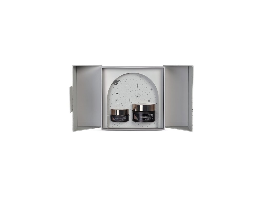 Liftingový set Fillift kombinuje krém na oči a pery na redukciu vrások, vačkov i tmavých kruhov so spevňujúcim remodelačným krémom, ktorý obnovuje objem, kontúry a pevnosť pleti.
