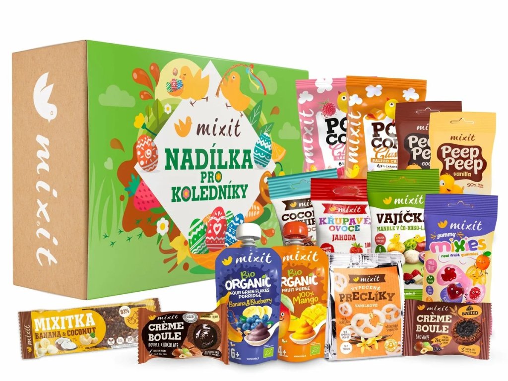 Šibači a kúpači, to sú naozajstní milovníci dobrôt! Preto sme do Veľ-koko-nočnej nádielky pre šibačov ukryli dobroty, ktoré potešia malé maškrtné jazýčky. Tento box je perfektný veľkonočný darček. Môžete ho darovať celý alebo rozdeliť jeho obsah medzi šibačov. Vo vnútri nájdete ochutnávku najlepších Mixit dobrôt aj obľúbenú veľkonočnú limitku Veľ-koko-nočné vajíčka.