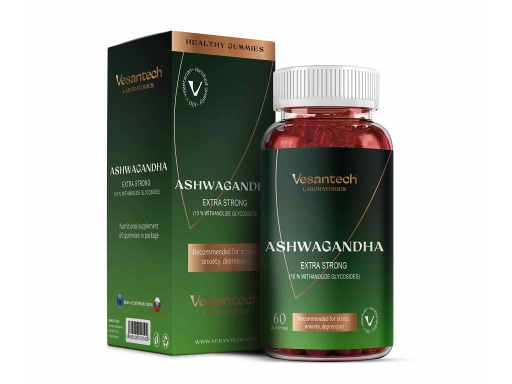 Vesantech Ashwagandha Gummies sú chutné a praktické gumové cukríky s extraktom z ashwagandhy, ktoré obsahujú najvyššiu koncentráciu bioaktívnych látok na trhu. Ashwagandha (Withania somnifera) je známa ako silný adaptogén, ktorý pomáha telu lepšie zvládať stres, zlepšuje psychickú rovnováhu, kognitívne funkcie, pamäť a sústredenie.