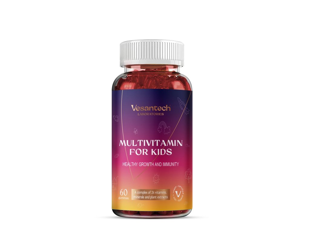 Vesantech Multivitamin for Kids Gummies sú chutné a zdravé želé vitamíny, ktoré podporujú správny rast, energiu a imunitu detí. Každá porcia obsahuje starostlivo vyváženú kombináciu vitamínov, minerálov a prírodných výťažkov z ovocia a zeleniny, ktoré prispievajú k celkovému zdraviu, správnemu vývoju mozgu, kostí a imunitného systému.